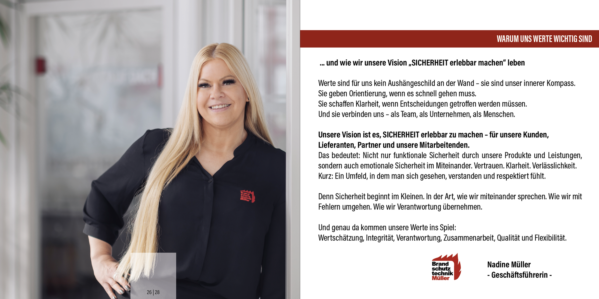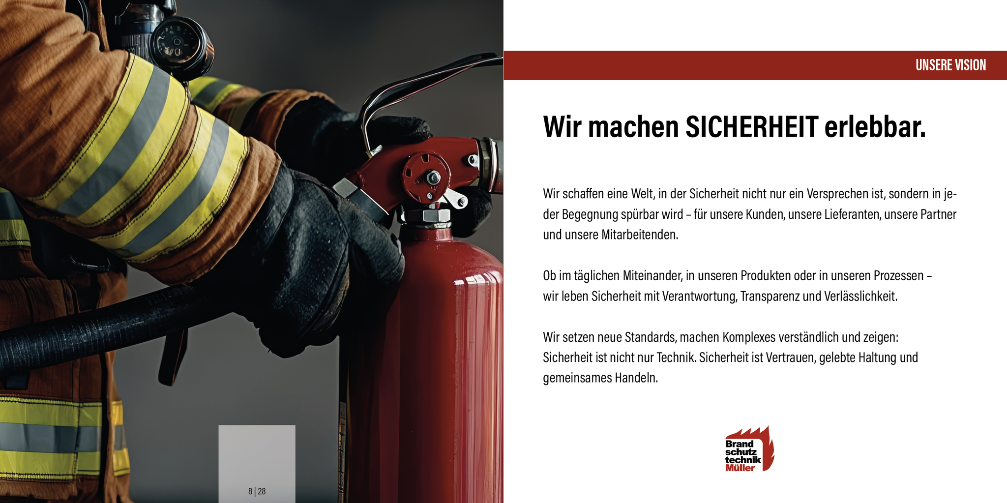 Wir schaffen eine Welt, in der Sicherheit nicht nur ein Versprechen ist, sondern in jeder Begegnung spürbar wird – für unsere Kunden, unsere Lieferanten und unsere Mitarbeitenden.